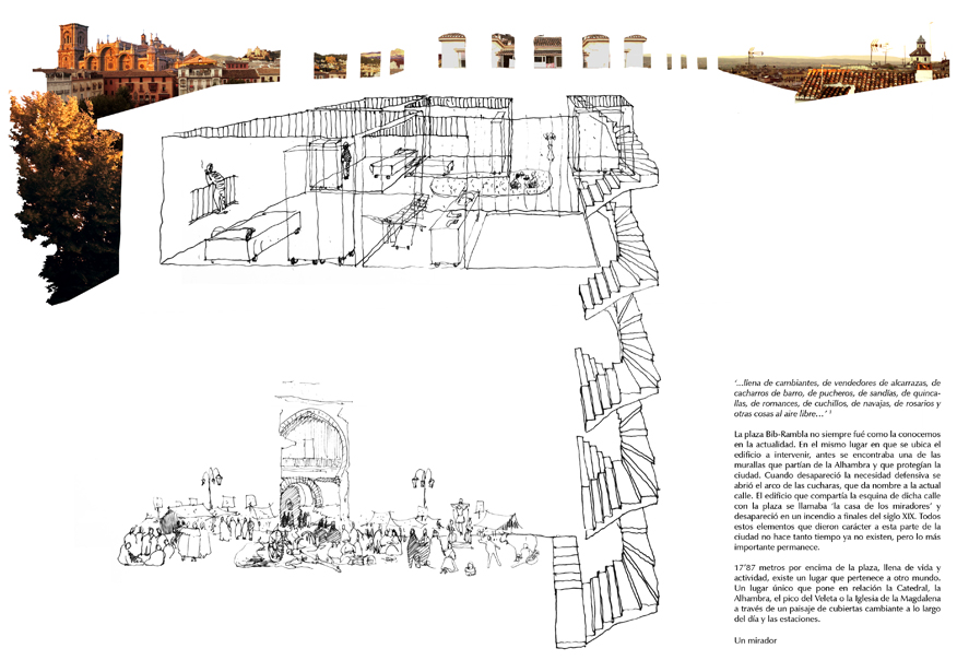 La plaza Bib-Rambla no siempre fué como la conocemos en la actualidad. En el mismo lugar en que se ubica el edificio a intervenir, antes se encontraba una de las murallas que partían de la Alhambra y que protegían la