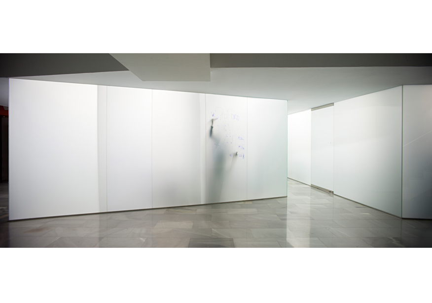 Esta elección derivaba en un coste de instalación muy reducido que podía realizarse en unas horas, algo muy importante debido a los pocos días disponibles para ejecutar el proyecto. Se invirtió un único día en toda la instalación eléctrica, consiguiendo los resultados esperados para el correcto funcionamiento de los 33 vidrios como envolvente, pizarra y pantalla de proyección. Los tubos LED colocados, de 23 W de potencia, tienen una vida útil mínima de 50.000 horas. El reducido consumo, junto con el ahorro en costes de mantenimiento, los convierte en una solución óptima para las circunstancias del cliente.