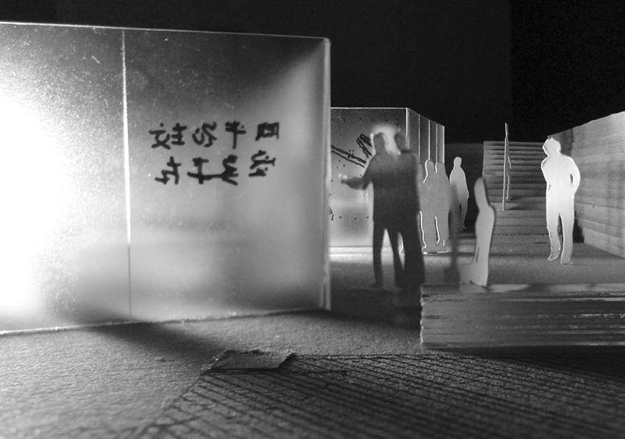 La propuesta que les hicimos consistía en el desplazamiento de estos 34 vidrios¹ encontrados para conformar con ellos las nuevas aulas, realizando esta operación durante los 10 días de vacaciones de Navidad, el único momento en que ambas academias estarían vacías. Pero más allá de la recuperación de un material que iba a ser desechado, nuestra intención era la de dotarlo de una «nueva vida», darle una segunda oportunidad basada en un total protagonismo, no sólo del espacio sino también de la actividad generada. Con tal fin colocamos los vidrios de forma que funcionaran como pizarra de cada aula y como pantalla para proyección tanto desde el interior como desde el exterior.