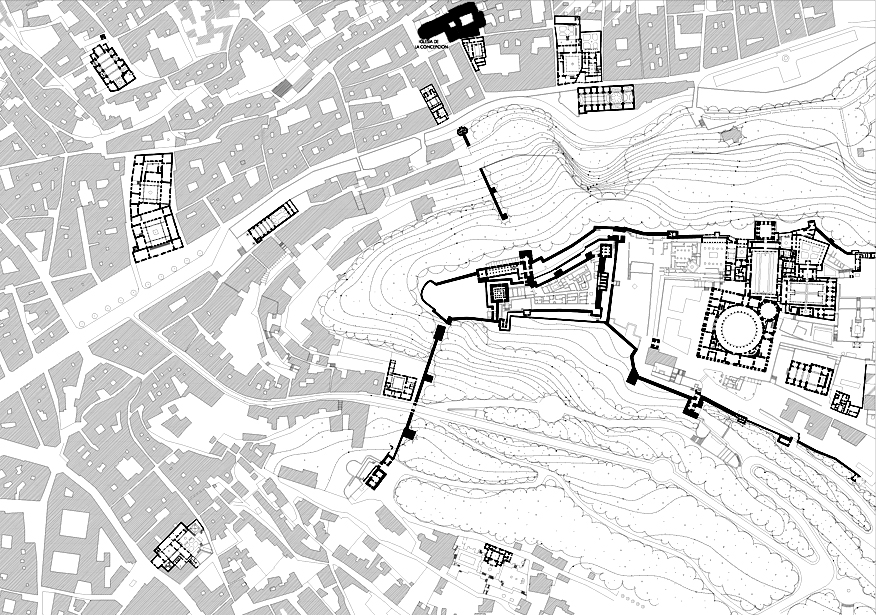 En el entorno del Albaicín, frente a la Alhambra, se encuentra el convento de la Concepción, que data de los siglos XVI-XVII. Se conformó por el encuentro de construcciones y espacios preexistentes en aquel momento en el barrio nobiliario de los Axares. Se trataba de casas con sus respectivos patios del siglo XVI, incluído un huerto-jardín, dando como resultado un edificio complejo con elementos arquitectónicos y decorativos muy diversos. Se presenta la oportunidad de reflexionar y realizar un proyecto de restauración y conservación del inmueble para albergar nuevos usos, recuperando sus valores formales, arquitectónicos e históricos esenciales.