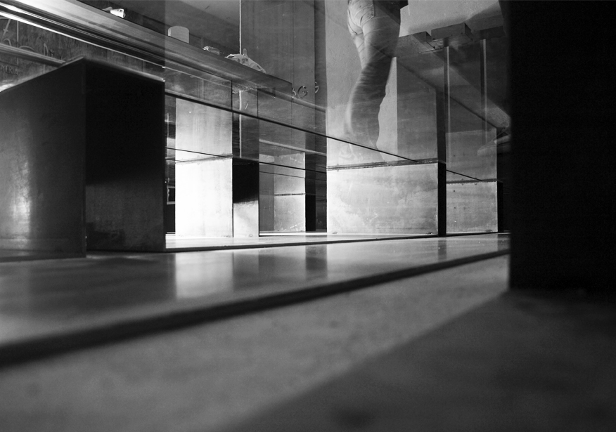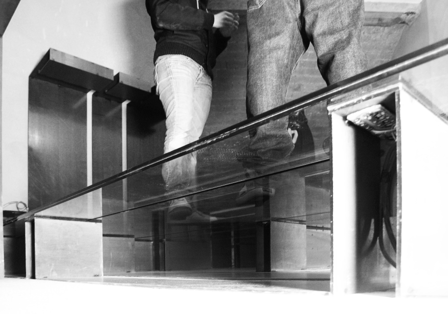 Los vidrios del suelo apoyan en las chapas a través de una junta elástica transparente. Algunos de ellos fueron dimensionados para poder ser manipulados por 2 personas de forma que pudieran efectuarse fácilmente las labores de mantenimiento, limpieza y cambio de escaparate. La envolvente se colocó con las máximas dimensiones posibles con el fin de liberar la esquina, ampliando el pasaje interior con aire y luz y fomentando la relación entre los distintos espacios, difuminando sus límites para dar lugar a nuevas experiencias y negociaciones entre lo público y lo privado, generando un beneficio para ambos ámbitos.