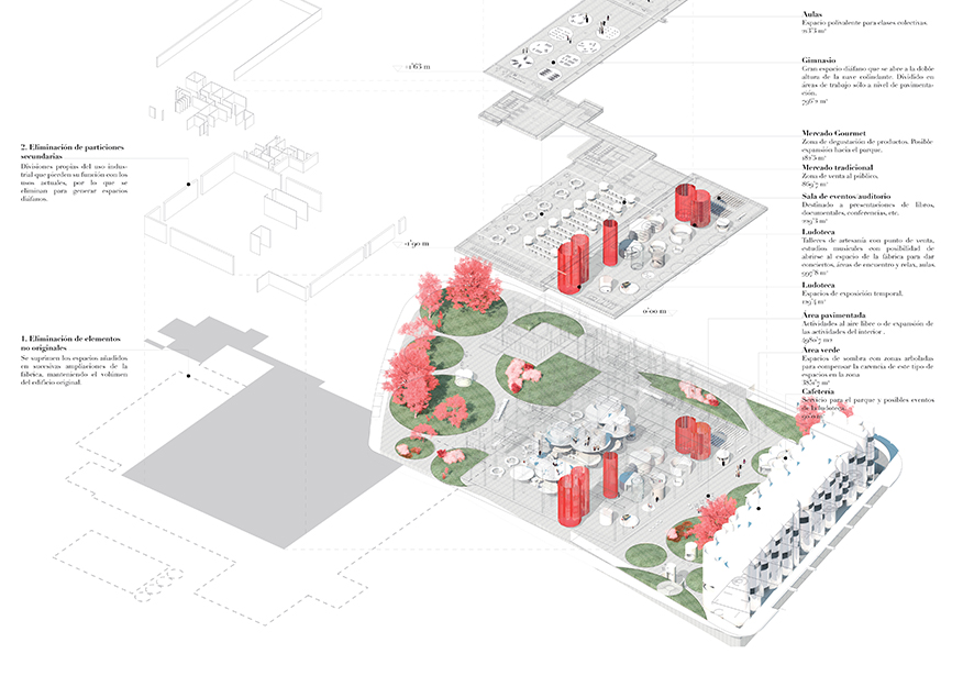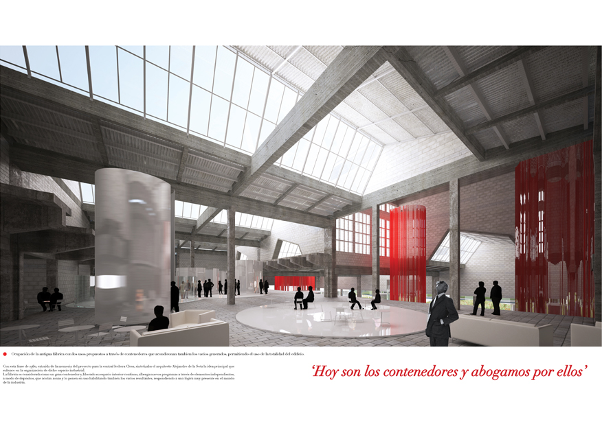 Finalista, propuesta ‘HOY SON LOS CONTENEDORES Y ABOGAMOS POR ELLOS’. Concurso de rehabilitación de la nave principal de la antigua fábrica de Clesa, construida por Alejandro de la Sota.
