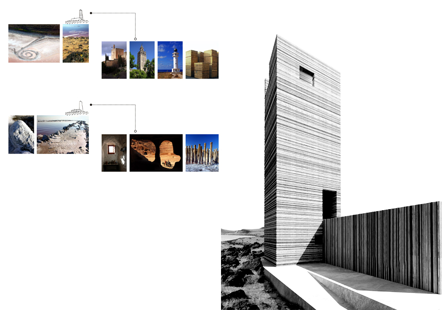 Por otro lado se estudia una escala más cercana, la observación de lo tangible, la materialidad del lugar y el contacto con un paisaje de sal: LA CUEVA. Actuando con una estrategia similar a las formaciones salinas del entorno. Dos maneras de actuar con un mismo material, que, como la obra a la que se asocian, tratan de poner en relieve la identidad del lugar y sus transformaciones con el paso del tiempo.