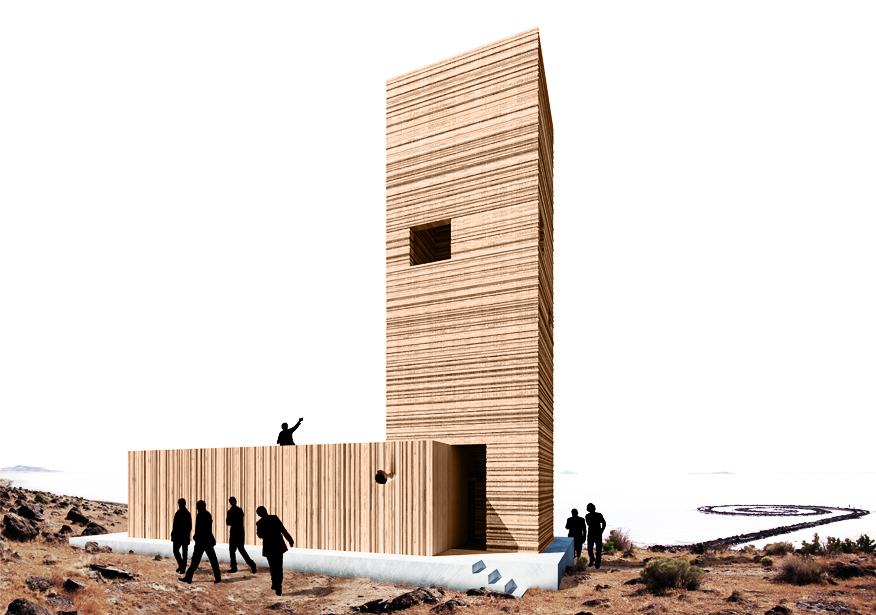 Frente a la obra de Robert Smithson Spiral Jetty, se plantean dos refugios de observación y descanso implicados específicamente con el lugar y el paisaje.