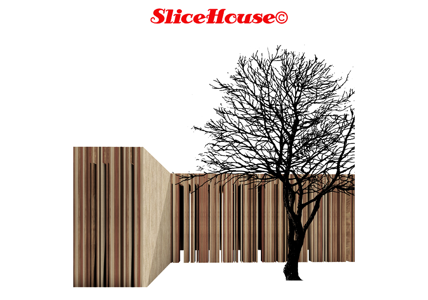 SliceHouse es un sistema de construcción de casas a través de una lajas-costillas de madera dispuestas una tras otra para la generación de ‘tubos habitacionales’.