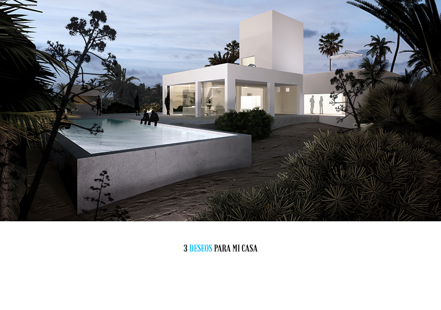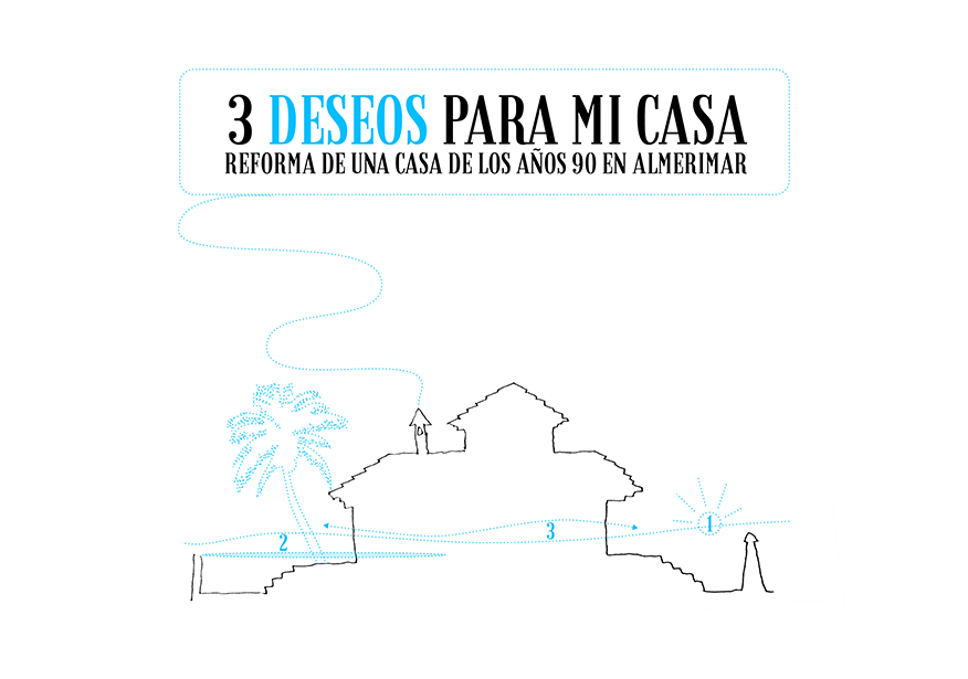 A comienzos de Julio de 2015 se nos encarga la remodelación de una casa construida a finales de los años 90 del siglo pasado en Almerimar, una unidad poblacional situada en El Ejido, provincia de Almería. El cliente no se plantea demoler la vivienda que acaba de adquirir, a pesar de que estéticamente no es de su agrado, y únicamente nos expresa tres deseos que anhela experimentar en la casa de sus sueños.