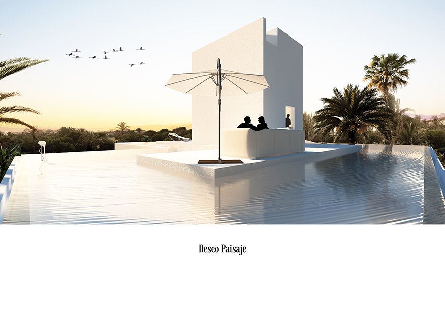 El proyecto trata de trasladar la actual casa convencional a un estado primigenio ideal. En un ejercicio de regresión arquitectónica pretendemos que, a partir de la estructura desnuda, la nueva casa se alimente de los cortijos, haciendas y lagares almerienses. Deseamos que además de establecer un diálogo más amable con la arquitectura popular, la nueva casa suponga un elemento de continuidad con el paisaje del paraje de Punta Entinas-Sabinar. Un nuevo lugar donde los flamencos puedan parar en sus largos desplazamientos.