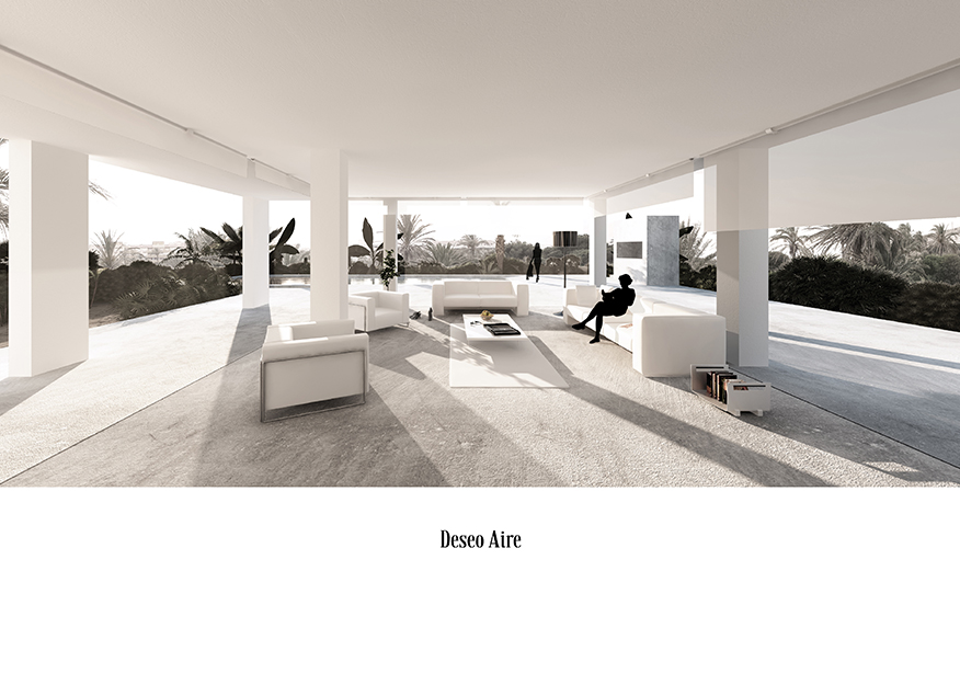 ¡Aire!. Para cumplir este deseo se suprimirán todas las molduras de colores y la decoración superpuesta de la vivienda actual. Se dejarán los muros blancos y se regularizará el perímetro, ampliando algunas estancias, reubicando y redimensionando algunas ventanas, para que la casa se perciba de una forma más unitaria y pueda disfrutar de una manera más adecuada del jardín, las vistas y el agua. Las zonas comunes se convierten en una caja de vidrio protegida del sol de tal forma que se pueda generar una relación entre el exterior y el interior mucho más intensa.