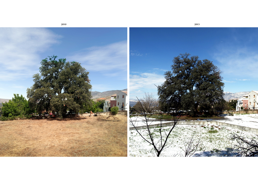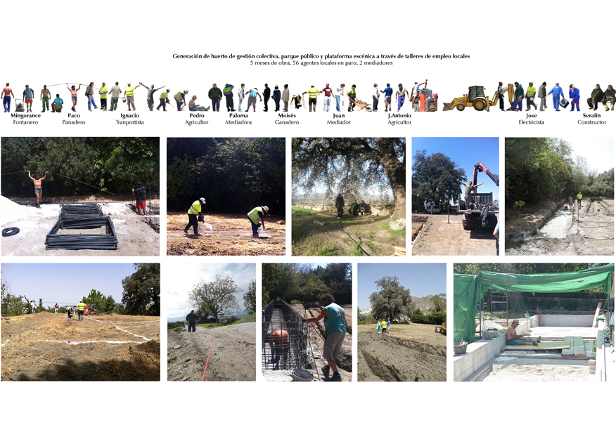 Nuestro papel en este proyecto ha consistido en la mediación entre las distintas necesidades y deseos del ayuntamiento, los vecinos y los operarios como trabajadores y como futuros usuarios, siendo la intervención el resultado de las distintas circunstancias que han rodeado el escenario del proyecto: Moisés tenía que vigilar sus ovejas en la parcela de al lado en su turno, Serafín traía herramientas de su antigua empresa constructora para trabajar más rápidamente, los planos se desaparecían continuamente, los vecinos paseaban por la obra contando sus ideas y recuerdos de este lugar y la alcaldesa observaba el proceso desde su balcón.