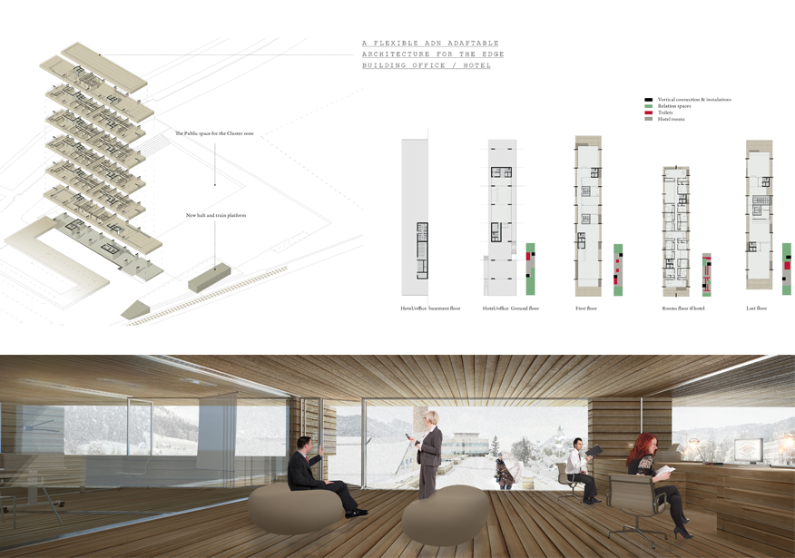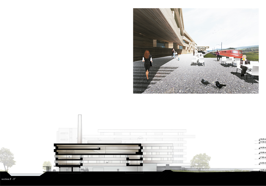 Si el futuro parece haber colonizado la zona este, hoy nos preguntamos: ¿qué futuro puede aguardar la parcela de la antigua Dubied? Actividades relacionadas con la Léchère, artesanos de alta gama, subcontratistas, talleres de artistas, empresas… una diversidad de actividades empresariales y culturales pueden ayudar a consolidar un territorio que hoy debe ser renovado. Naves industriales, talleres, almacenes, locales técnicos y administrativos que a lo largo del tiempo han sido ampliados, abandonados o demolidos constituyen el laberinto en el que se inscribe el proyecto. Nosotros entendemos que estos fragmentos de arquitectura e infraestructura pueden ser interpretados como un patrimonio en transformación que precisa un hilo conductor para su evolución. Se trata de un patrimonio que trasciende a la tradicional clasificación que distingue entre edificios a conservar y a demoler, un patrimonio en el que los fragmentos tienen la misma importancia que las relaciones de producción. En este paisaje de intercambio, pensamos que es necesario un argumento que permita tejer los fragmentos de un pasado interrumpido dramáticamente y un futuro en emergencia. éste es el tejido con el que construir la «Dubied contemporánea».